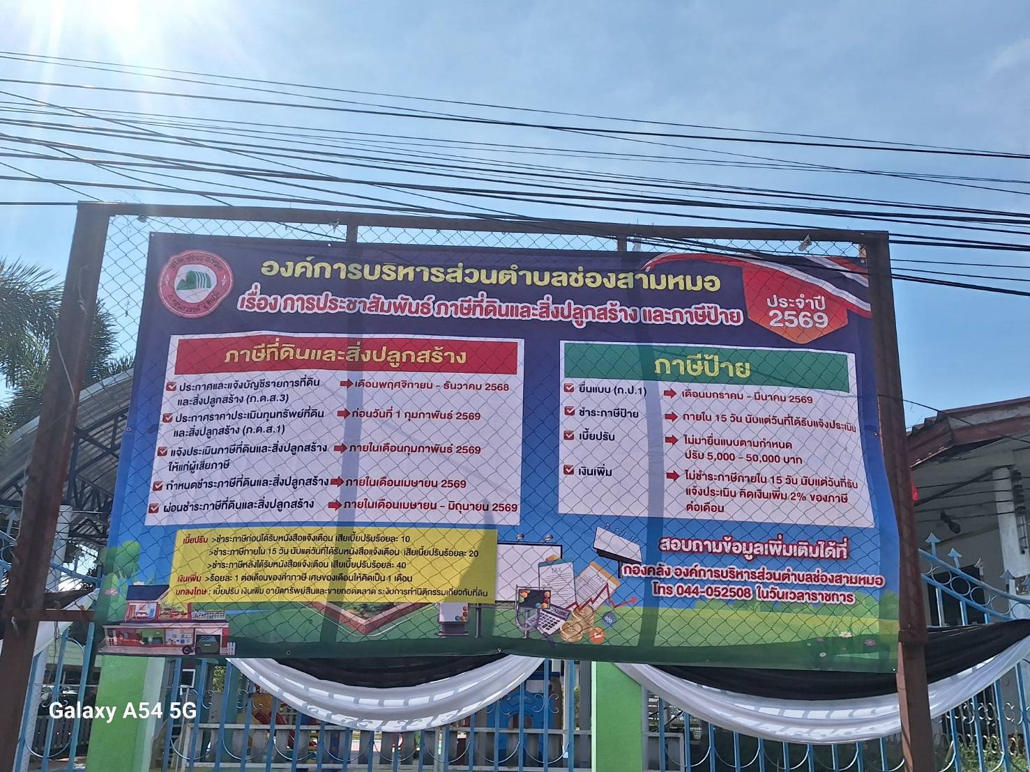 องค์การบริหารส่วนตำบลช่องสามหมอ แจ้งประชาสัมพันธ์ ภาษีที่ดิน และสิ่งปลูกสร้าง และภาษีป้าย ประจำปีงบประมาณ 2569