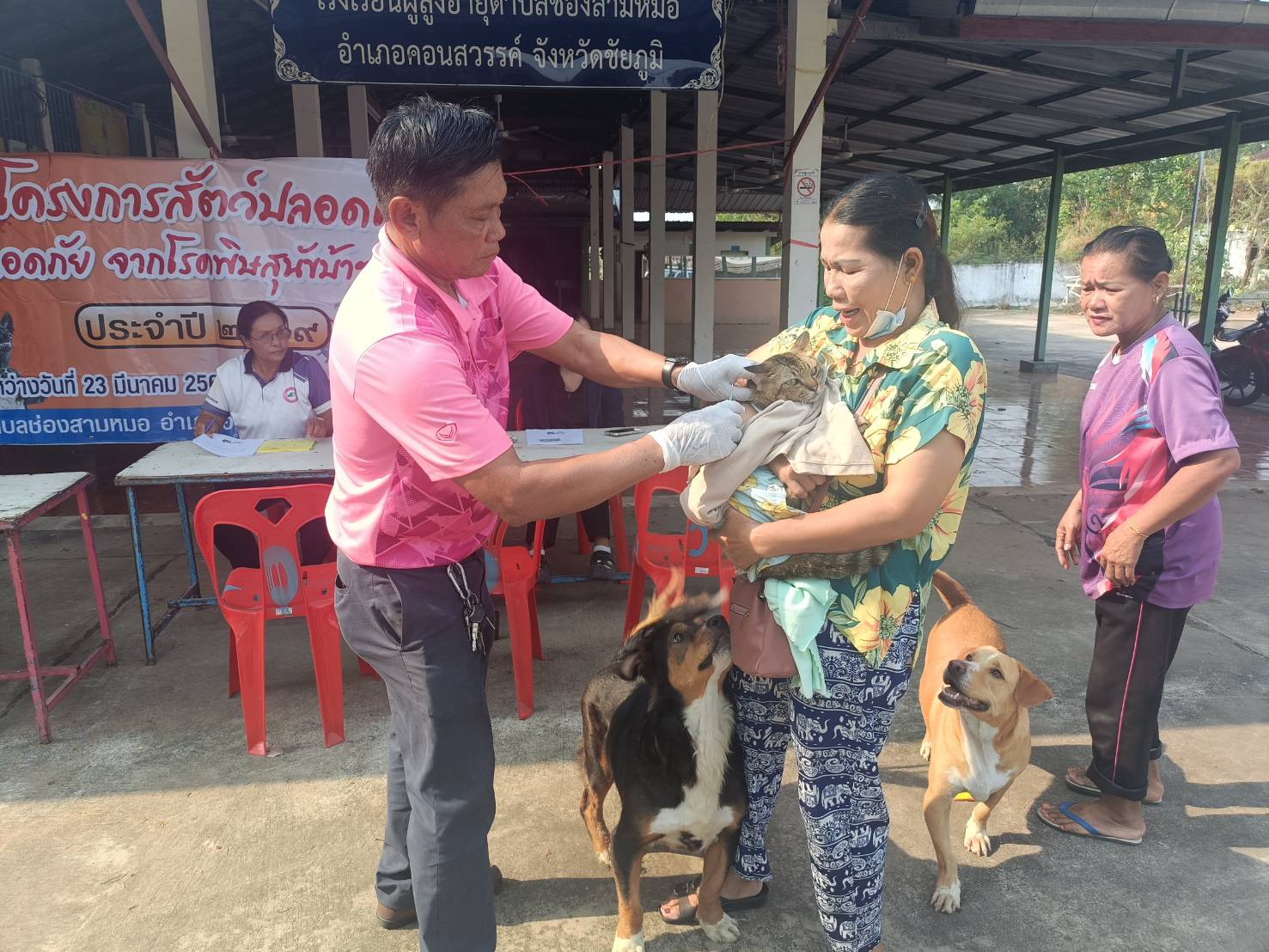 ในวันอังคารที่ 24 มีนาคม 2569 นายอภิคม ครองสำราญ มอบหมายให้ นางสาวบังอร มลัยทิพย์ หัวหน้าสำนักปลัด พร้อมด้วยเจ้าหน้าที่สำนักปลัด ออกให้บริการฉีดวัคซีนป้องกันโรคพิษสุนัขบ้า ประจำปีงบประมาณ 2569 ณ ศาลาประชาคม ม.8 บ้านหนองแดง เพื่อป้องกันและควบคุมไม่ให้สุนัขและแมวเป็นโรคพิษสุนัขบ้า ซึ่งจะทำให้คนและสัตว์ปลอดภัย และไม่มีผู้เสียชีวิตจากโรคพิษสุนัขบ้า