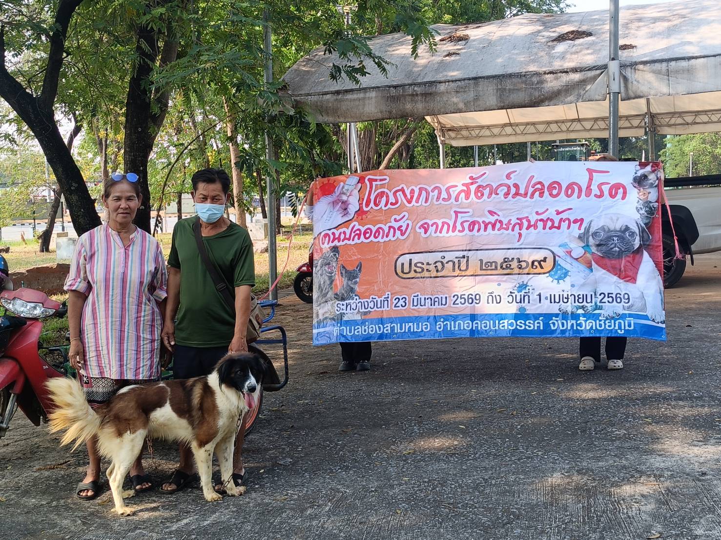 ในพฤหัสบดีที่ 1 เมษายน 2569 นายอภิคม ครองสำราญ มอบหมายให้ นางสาวบังอร มลัยทิพย์ หัวหน้าสำนักปลัด พร้อมด้วยเจ้าหน้าที่องค์การบริหารส่วนตำบลช่องสามหมอ ออกให้บริการฉีดวัคซีนป้องกันโรคพิษสุนัขบ้า ประจำปีงบประมาณ 2569 ณ ศาลาประชาคม ข้านชนแดน ม.5 เพื่อป้องกันและควบคุมไม่ให้สุนัขและแมวเป็นโรคพิษสุนัขบ้า ซึ่งจะทำให้คนและสัตว์ปลอดภัย และไม่มีผู้เสียชีวิตจากโรคพิษสุนัขบ้า