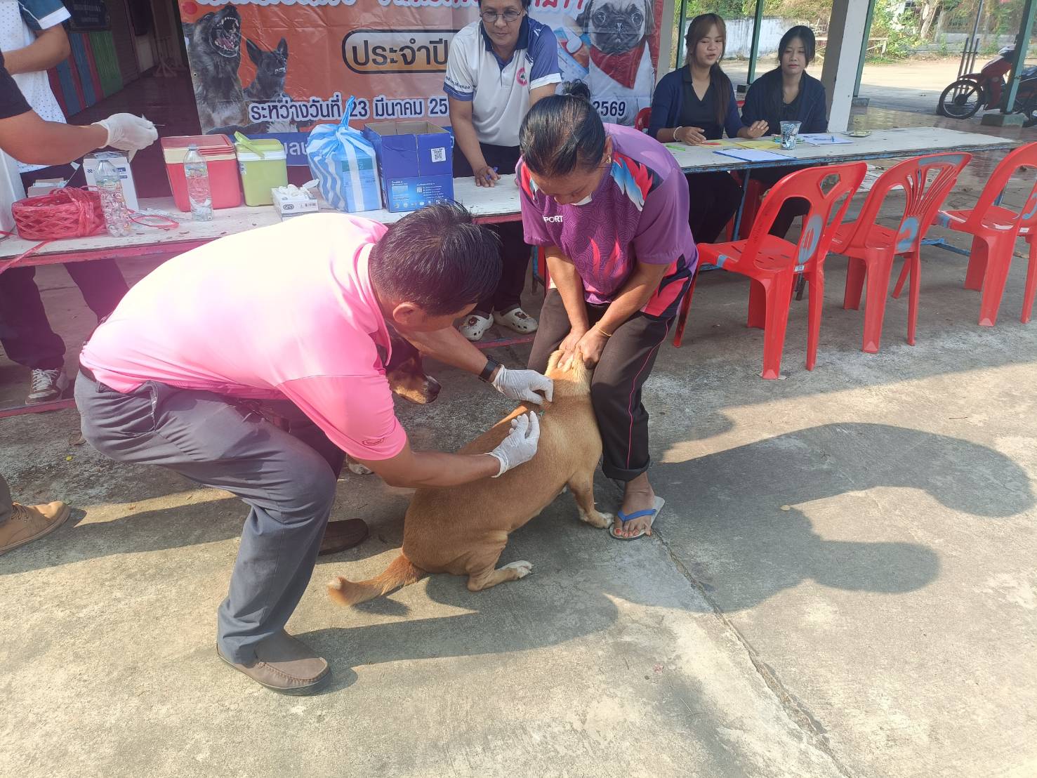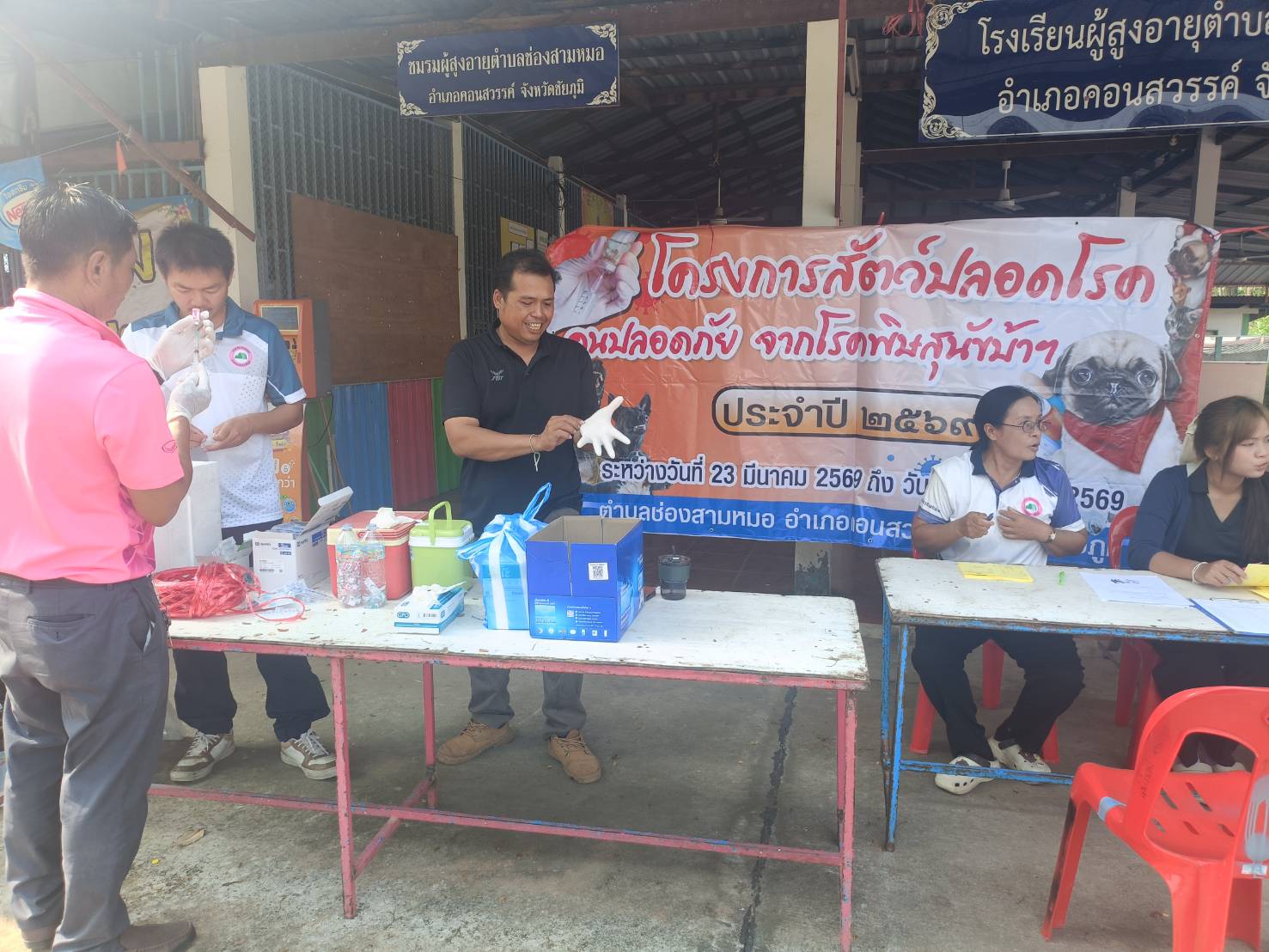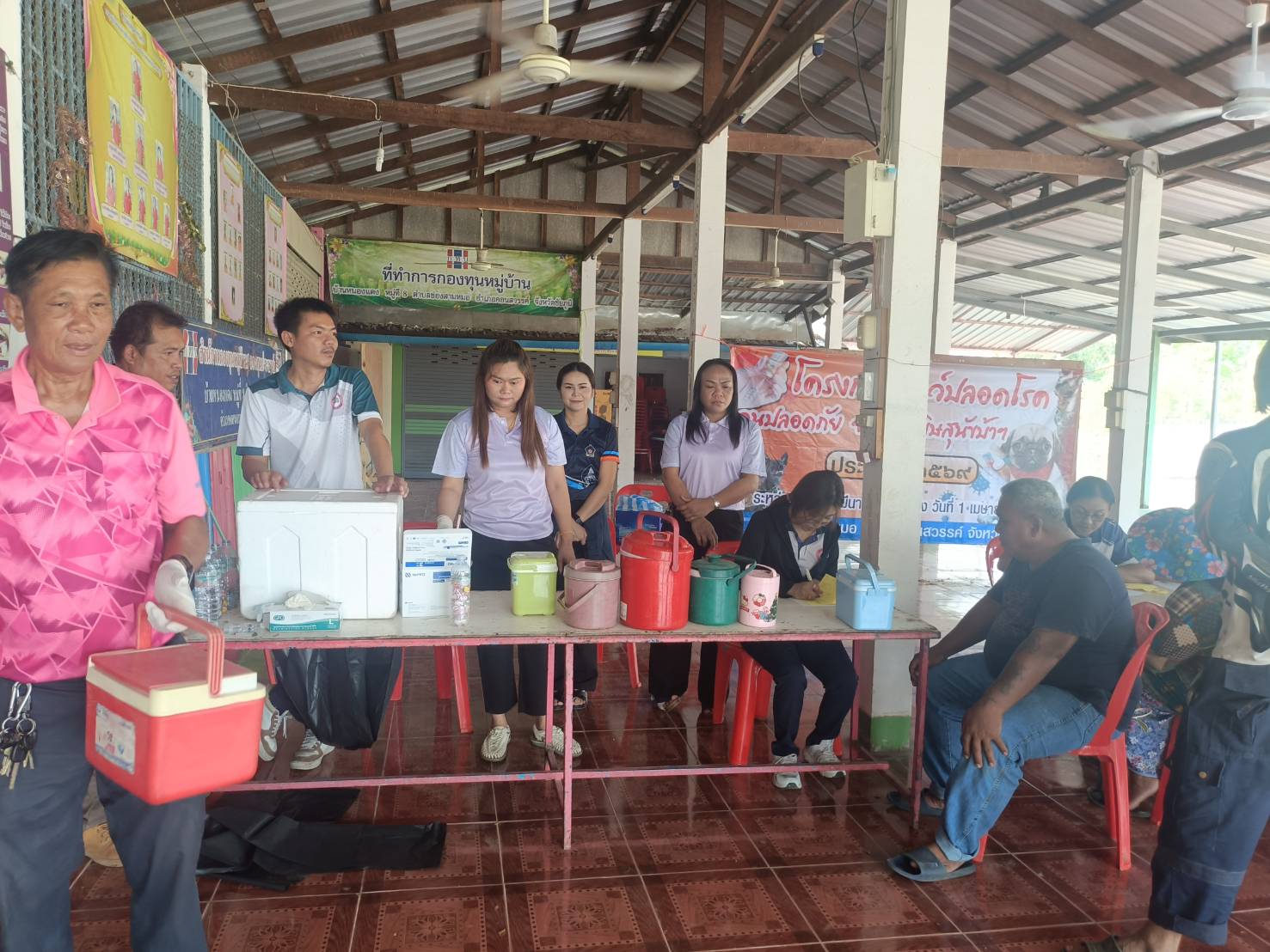 ในวันอังคารที่ 24 มีนาคม 2569 นายอภิคม ครองสำราญ มอบหมายให้ นางสาวบังอร มลัยทิพย์ หัวหน้าสำนักปลัด พร้อมด้วยเจ้าหน้าที่สำนักปลัด ออกให้บริการฉีดวัคซีนป้องกันโรคพิษสุนัขบ้า ประจำปีงบประมาณ 2569 ณ ศาลาประชาคม ม.8 บ้านหนองแดง เพื่อป้องกันและควบคุมไม่ให้สุนัขและแมวเป็นโรคพิษสุนัขบ้า ซึ่งจะทำให้คนและสัตว์ปลอดภัย และไม่มีผู้เสียชีวิตจากโรคพิษสุนัขบ้า